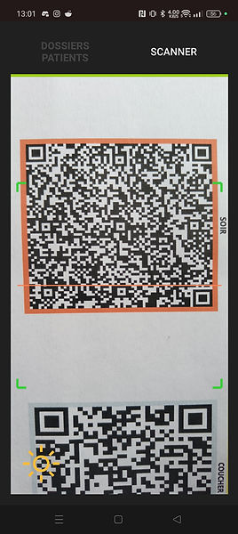 Après le scan du QR Code , les médica-ments pour ce jour du patient s’affichent et la liste se cale en haut de l’écran au niveau du temps de prise choisi.
